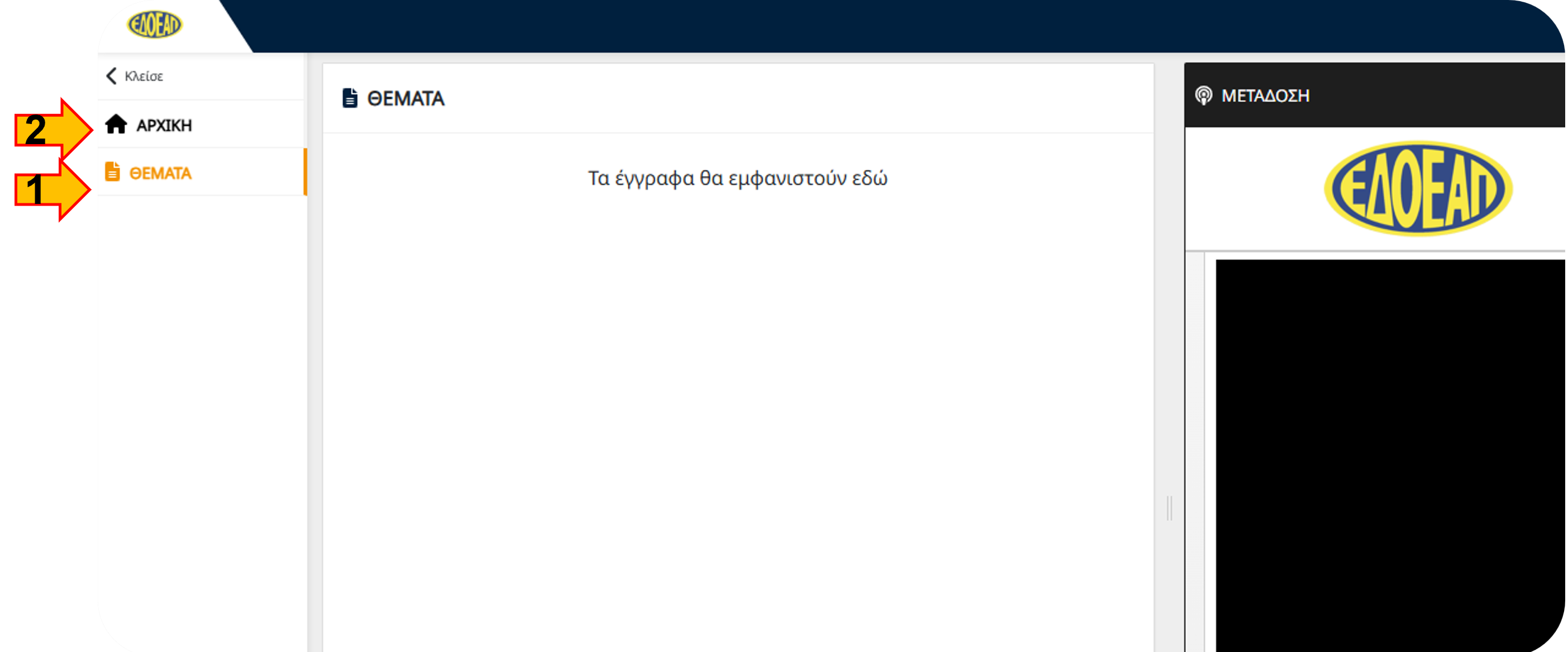 1. Στα αριστερά της οθόνης στην επιλογή «ΘΕΜΑΤΑ» θα δείτε το αρχείο με τη λίστα των θεμάτων της ημερήσιας διάταξης.