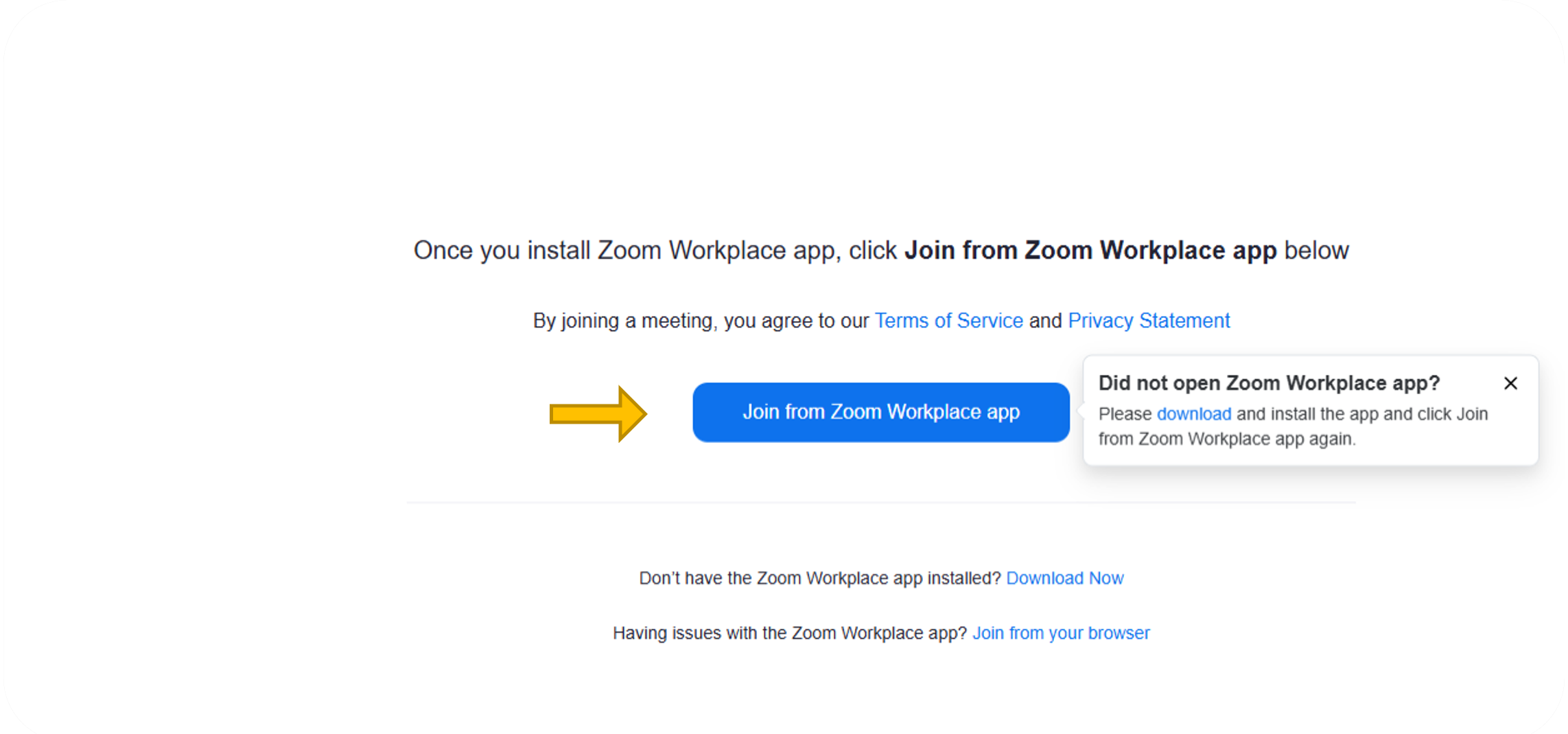 Αν έχετε ήδη εγκατεστημένη την εφαρμογή, επιλέξτε “Join Zoom Workplace” για να συνδεθείτε.